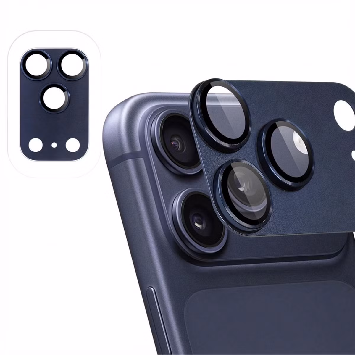 Bescherm de camera van je iPhone 17 pro max met deze blauwe Camera Lens Protector. De protector is speciaal ontworpen voor de cameramodule van de iPhone 17 pro max en beschermt de lenzen tegen krassen, stof en dagelijkse beschadigingen.