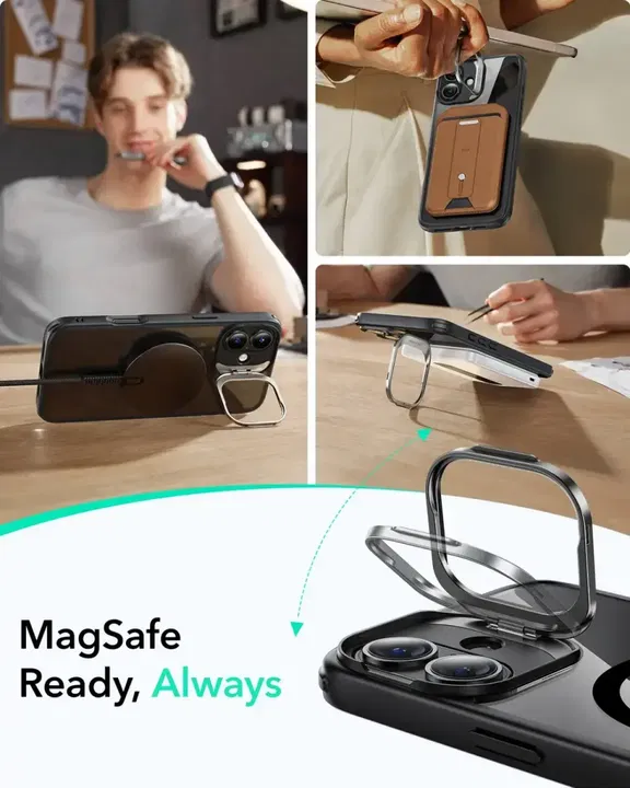 De ESR Hybrid Case is opgebouwd uit stevig PC‑materiaal voor structuur en valbescherming, gecombineerd met flexibel TPU‑materiaal dat schokken opvangt en grip verbetert. Verhoogde randen rondom het scherm en de camera zorgen voor extra bescherming wanneer je de smartphone neerlegt. De transparante afwerking laat de originele kleur van je iPhone volledig zichtbaar.