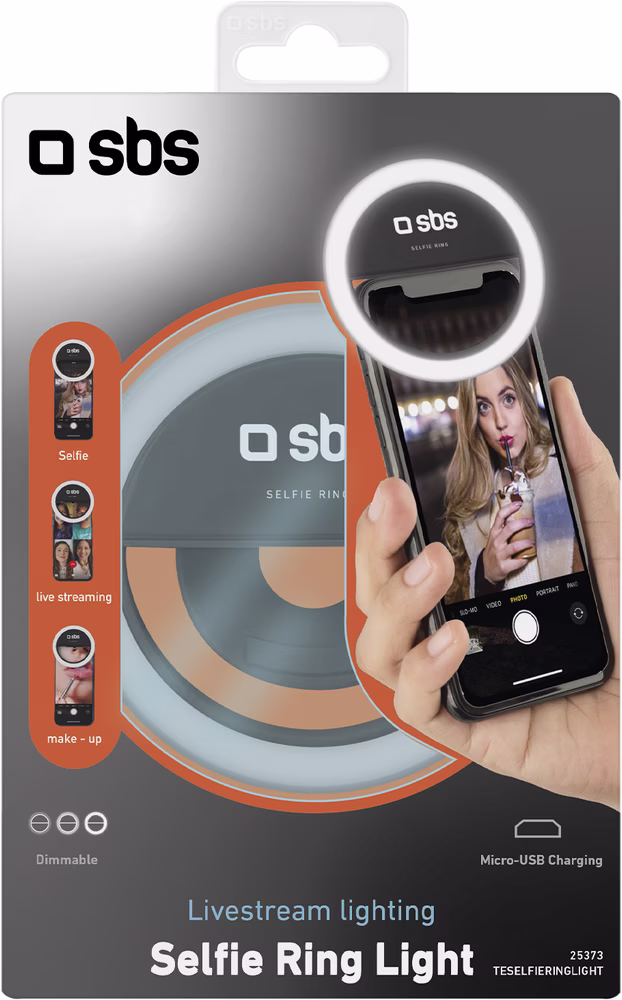 De SBS Selfie Ring Light beschikt over meerdere helderheidsniveaus, zodat je de verlichting eenvoudig aanpast aan jouw omgeving. Of je nu binnen of buiten filmt, je geniet altijd van optimale belichting. De ringvormige LED-verlichting zorgt voor een natuurlijke uitstraling en een professionele look.