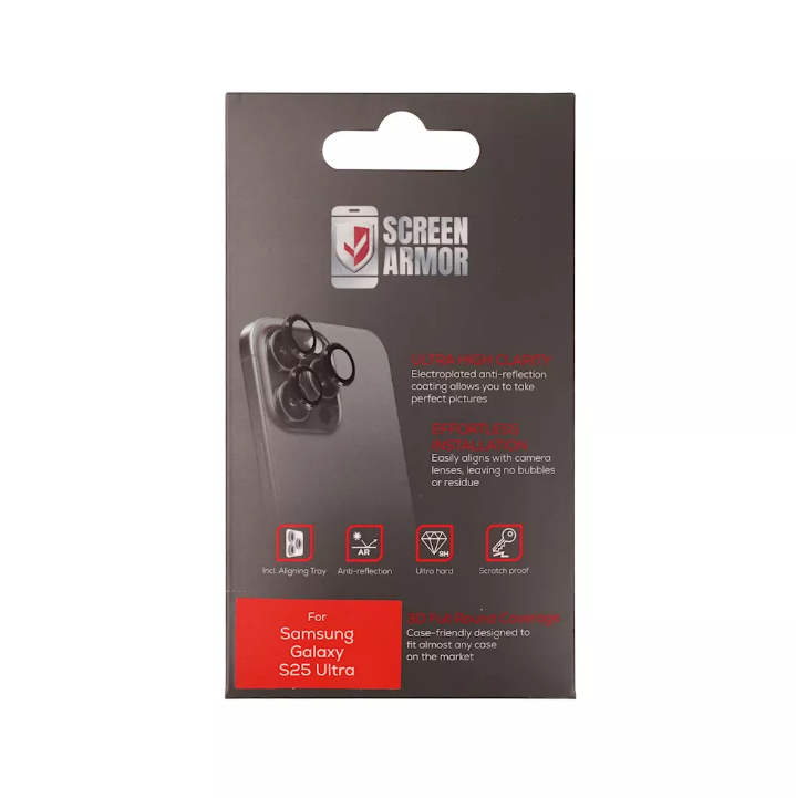 De ScreenArmor Lens Defender voor Samsung Galaxy S25 Ultra beschermt de cameralenzen van je smartphone tegen krassen, stof en stoten. Dankzij het ultradunne ontwerp blijft de kwaliteit van je foto’s en video’s volledig behouden.