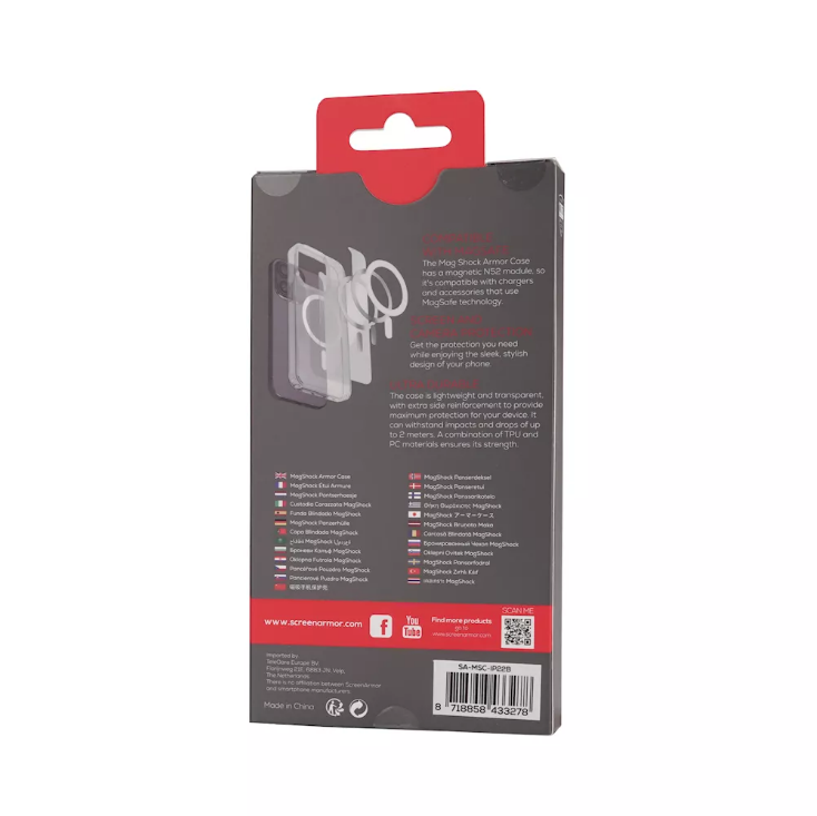 Geef je iPhone 14 pro slanke bescherming met de ScreenArmor MagAir Case in het transparant. Het ultradunne ontwerp met magnetische ondersteuning beschermt tegen krassen en stoten zonder extra bulk.